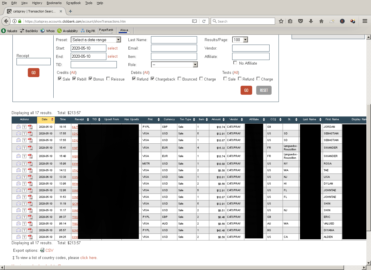 The below screenshot will give you a glimpse into the success of Cat Spraying No More. A week after launching and we already have a constant flow of sales. Below you can see a screenshot of the affiliate sales of just one day.